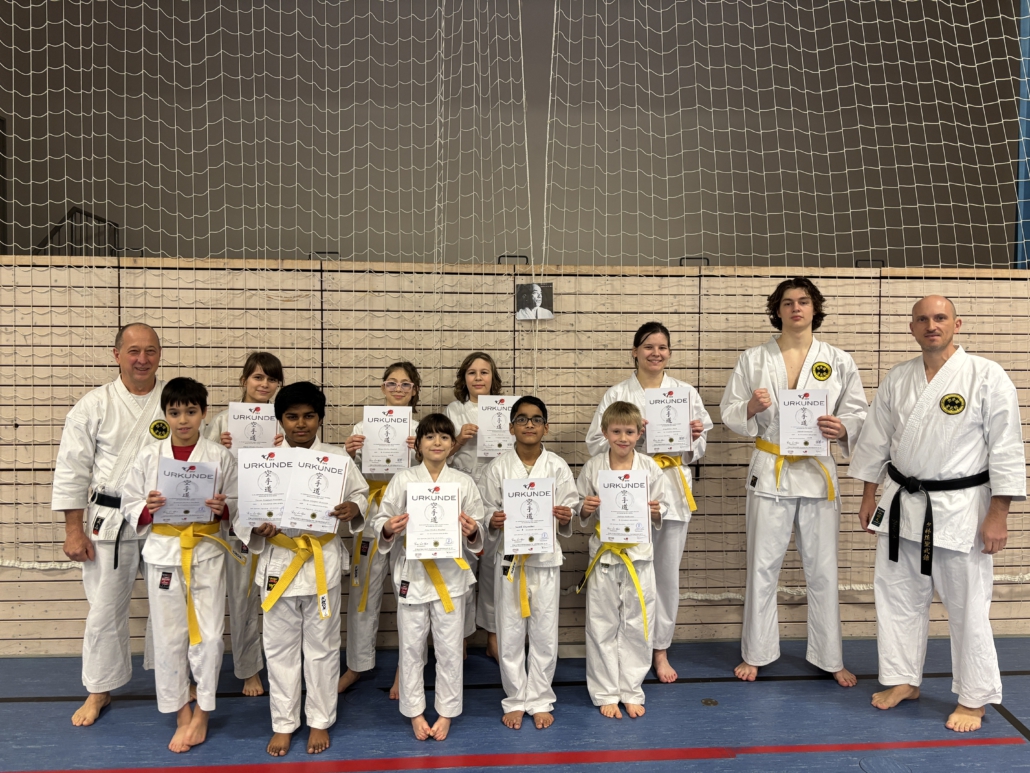 Wir freuen uns sehr über die tolle Leistung aller Prüfungsteilnehmer und gratulieren unseren erfolgreichen Prüflingen zur bestandenen Karateprüfung für den Gelbgurt (9 Prüflinge) und Orangegurt (1 Prüfling).